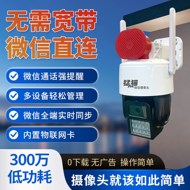 无需宽带,手机微信直接查看,高清夜视,户外防水,家庭、养殖场、庭院通用。
